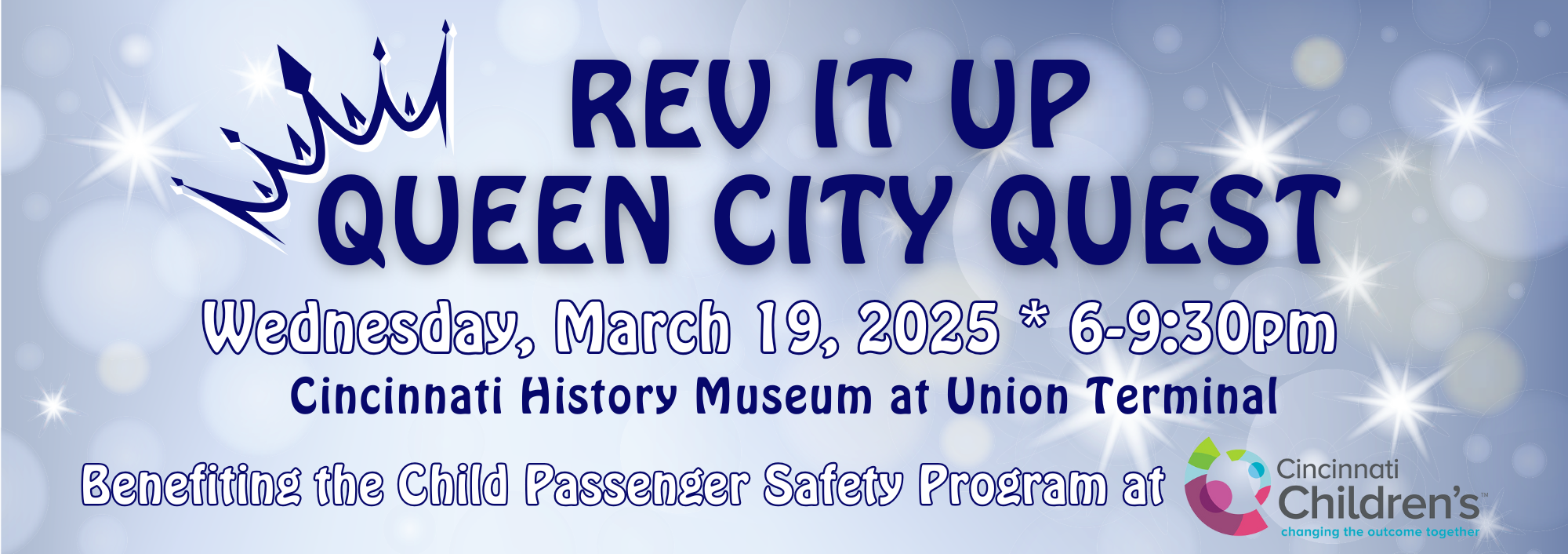 Our 2025 REV IT UP event will be Wednesday, March 19, 6-9:30pm. Although the traditional live Cincinnati Auto Expo will not take place in 2025 due to the renovations currently underway at the Duke Energy Convention Center, the annual party will be held at the Cincinnati History Museum at Union Terminal.